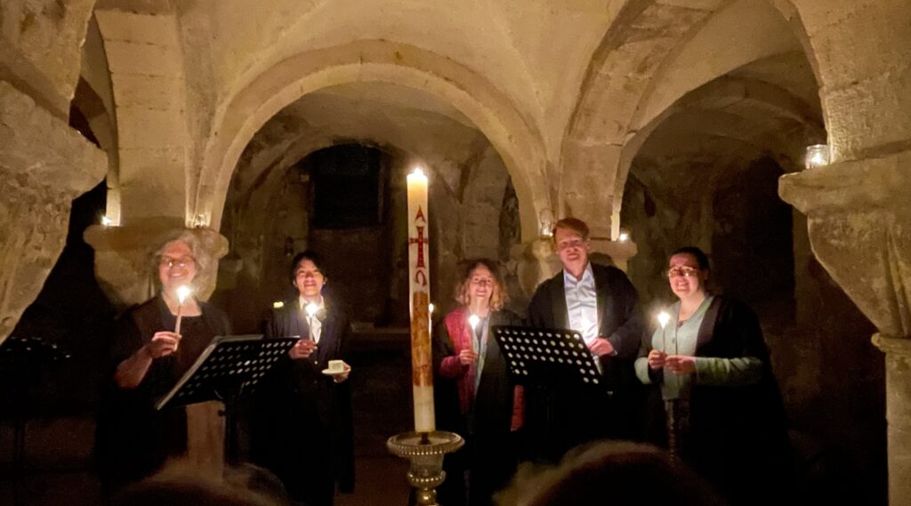 GBOFFL Schola in the Norman crypt of St-Peter-in-the-East, the library church of St Edmund Hall